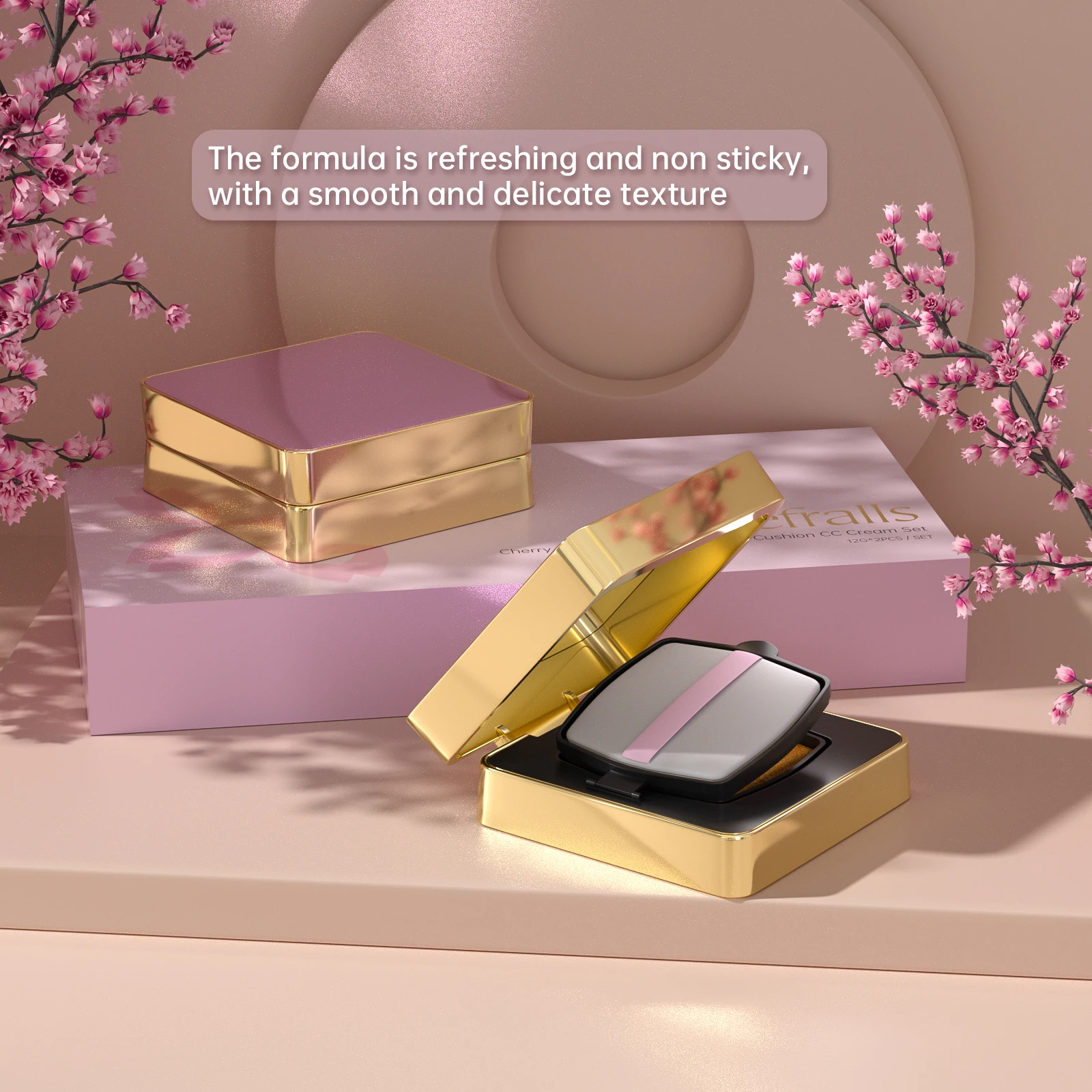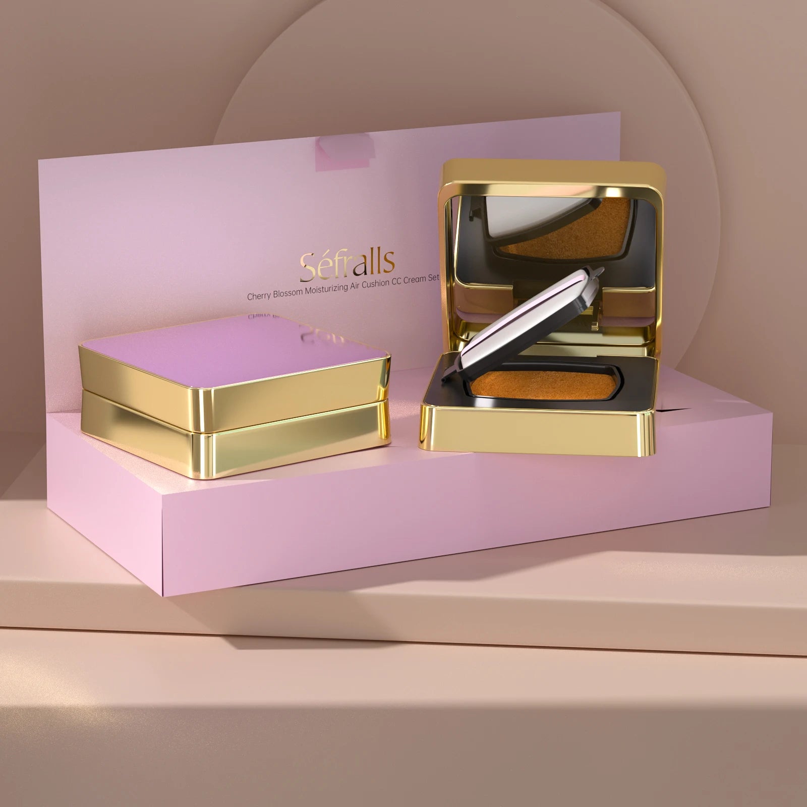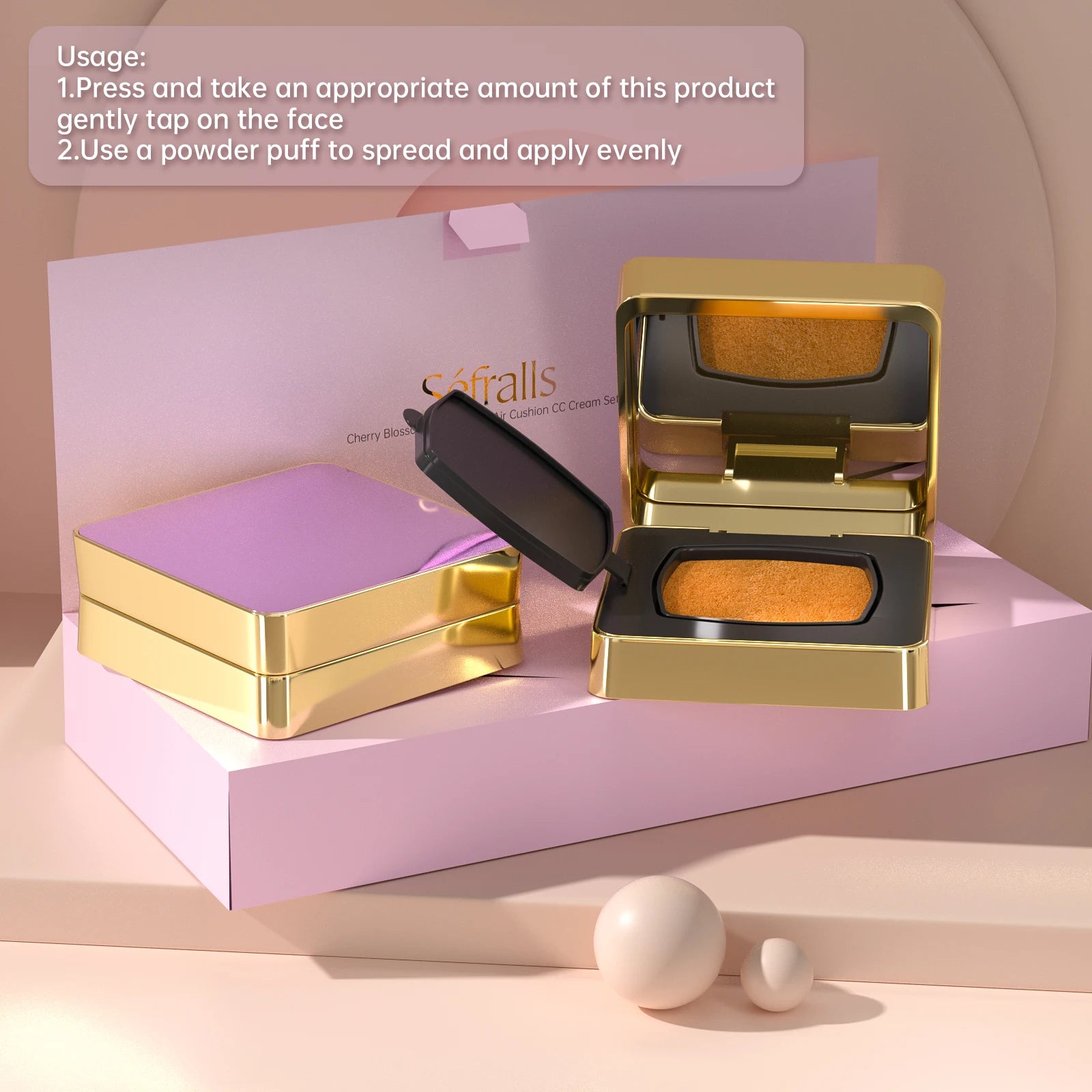Séfralls Cherry Blossom Air Cushion CC Cream Set 12g×2 (Wheat/Copper) - Hydrating Moisturizing Foundation, Long Lasting Natural