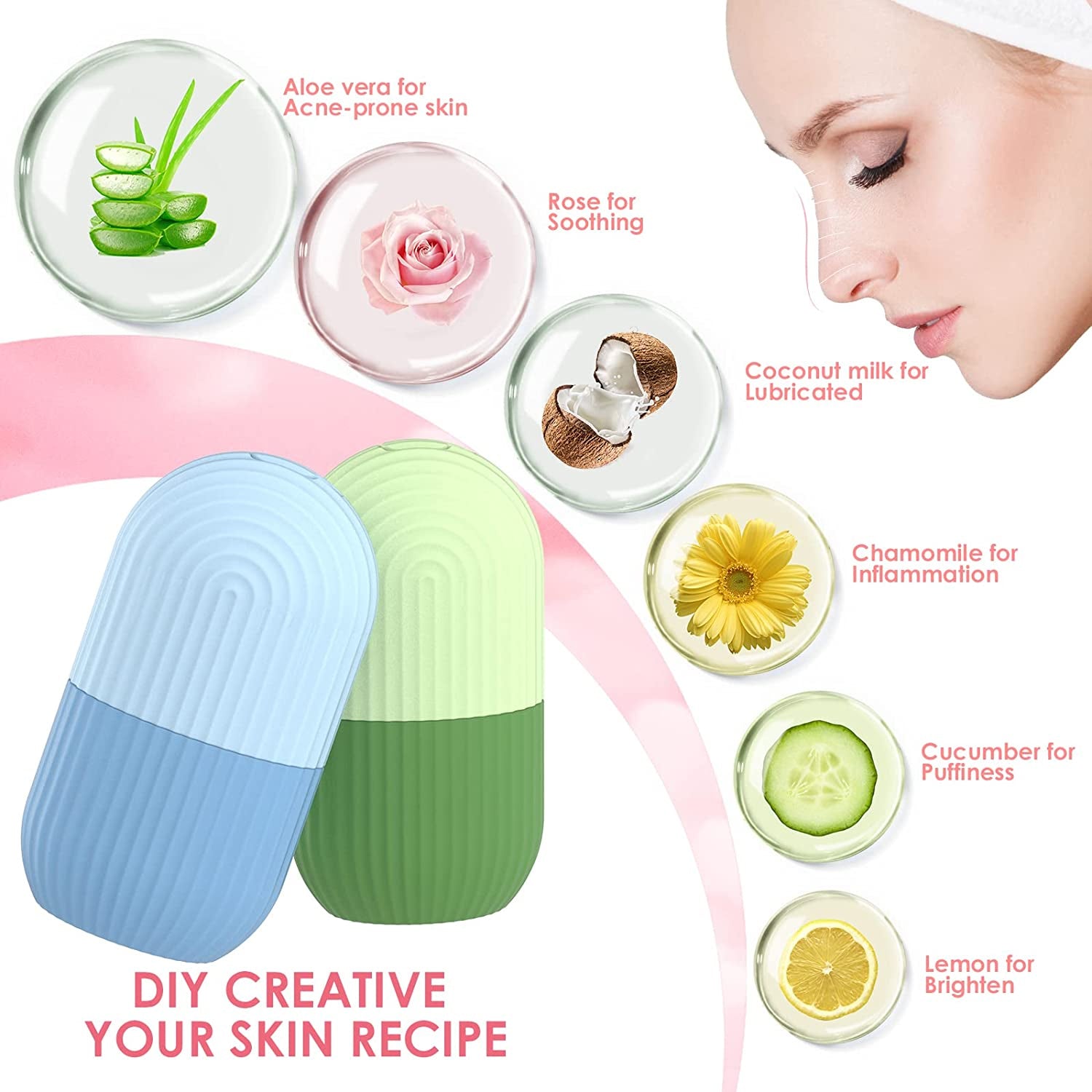 Roller Facial de Gelo em Silicone - Massagem Refrescante para Rosto, Olhos e Pescoço